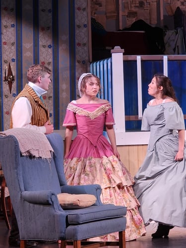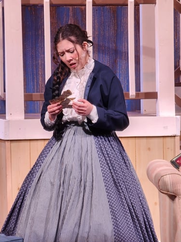 Little Women is my signature show! It's a Victorian delight, a crowd pleaser, without being sappy or too sentimental. Louisa May Alcott's brilliant depiction of the joys and sorrows of family has been charming readers for nearly two centuries. If you do the play, you'll want the right costumes to really bring it to life. Contact me for information about a full-plot rental for your entire cast. It includes multiple costumes for each character, all the needed accessories, and even on-site availability for alterations. Cost for this amazing costume experience varies based on distance, cast size and any special needs. But generally as full costume plot rental is only about $3,000-$5,000. Contact me to schedule a free consultation.